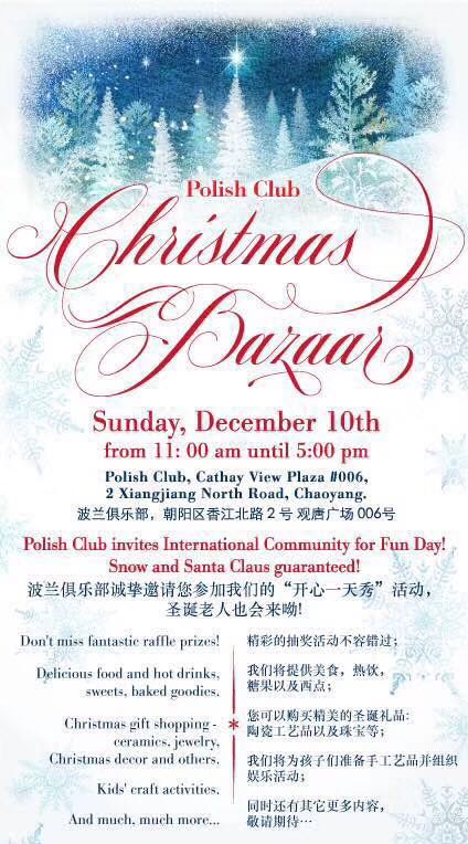 Adults RMB 100 kids RMB 10, December 2nd, from 11am to 6pm at the German Embassy for more information look here.
