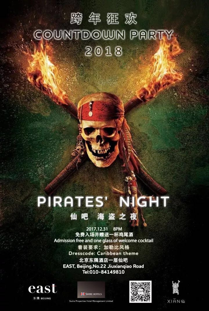All ages. The Black Pearl has sailed into XIAN this year and the tropical winds have carried with them a crew of party pirates. Feel the sand between your toes and enjoy our festive Caribbean rum cocktails. So dust off your eye patch and three-pointed hat and do your best Captain Jack Sparrow, let’s sail into 2018 in style at XIAN! Entry is free and includes a welcome drink and unlimited bad pirate jokes. XIAN at EAST Beijing. (8414 9810)
