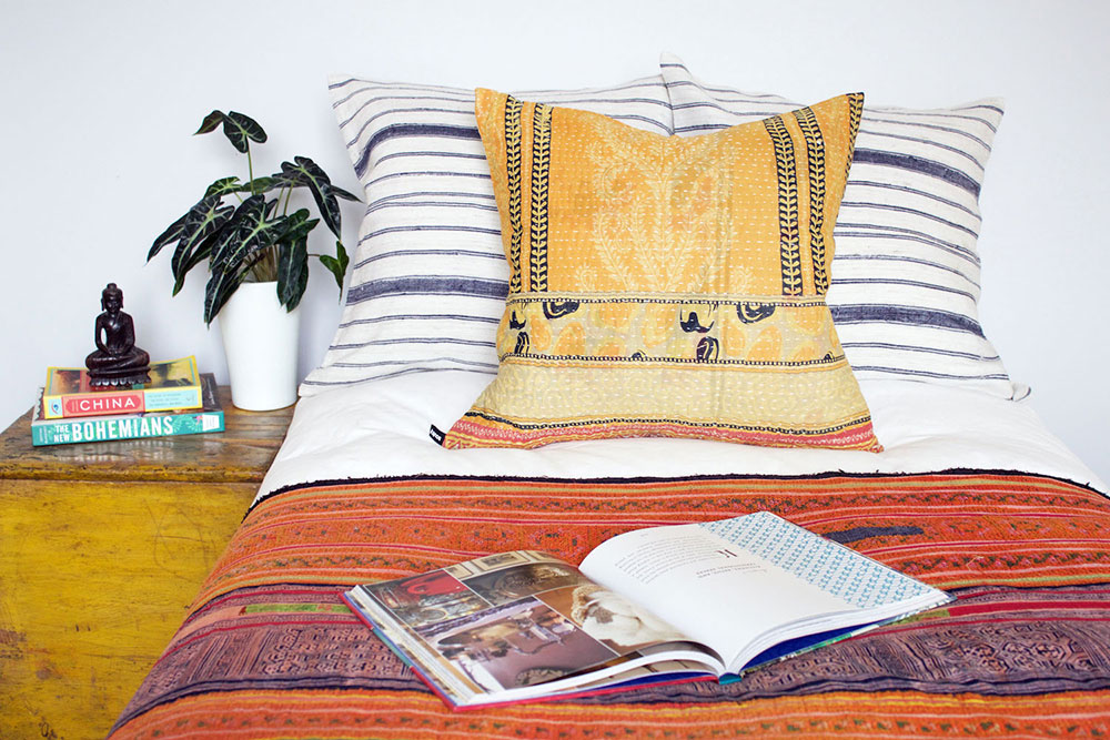 One day it occurred to me that this “boutique shop” look was missing from the Beijing landscape. I loved this style, but I couldn’t buy it anywhere! Beijing has abundant access to mass-produced home goods, but there seems to be very little in the way of handcrafted and vintage items; the type of items that instantly add so much character and depth to a room. I started Souky Souky to help fill the void in the Beijing marketplace. At Souky Souky we source vintage and handmade fabrics from all over the world and then transform them into beautiful throw pillows. By doing so, we provide our customers with both beautiful items that help them create that perfect “gathered” look, and an alternative to purchasing mass-produced home décor.