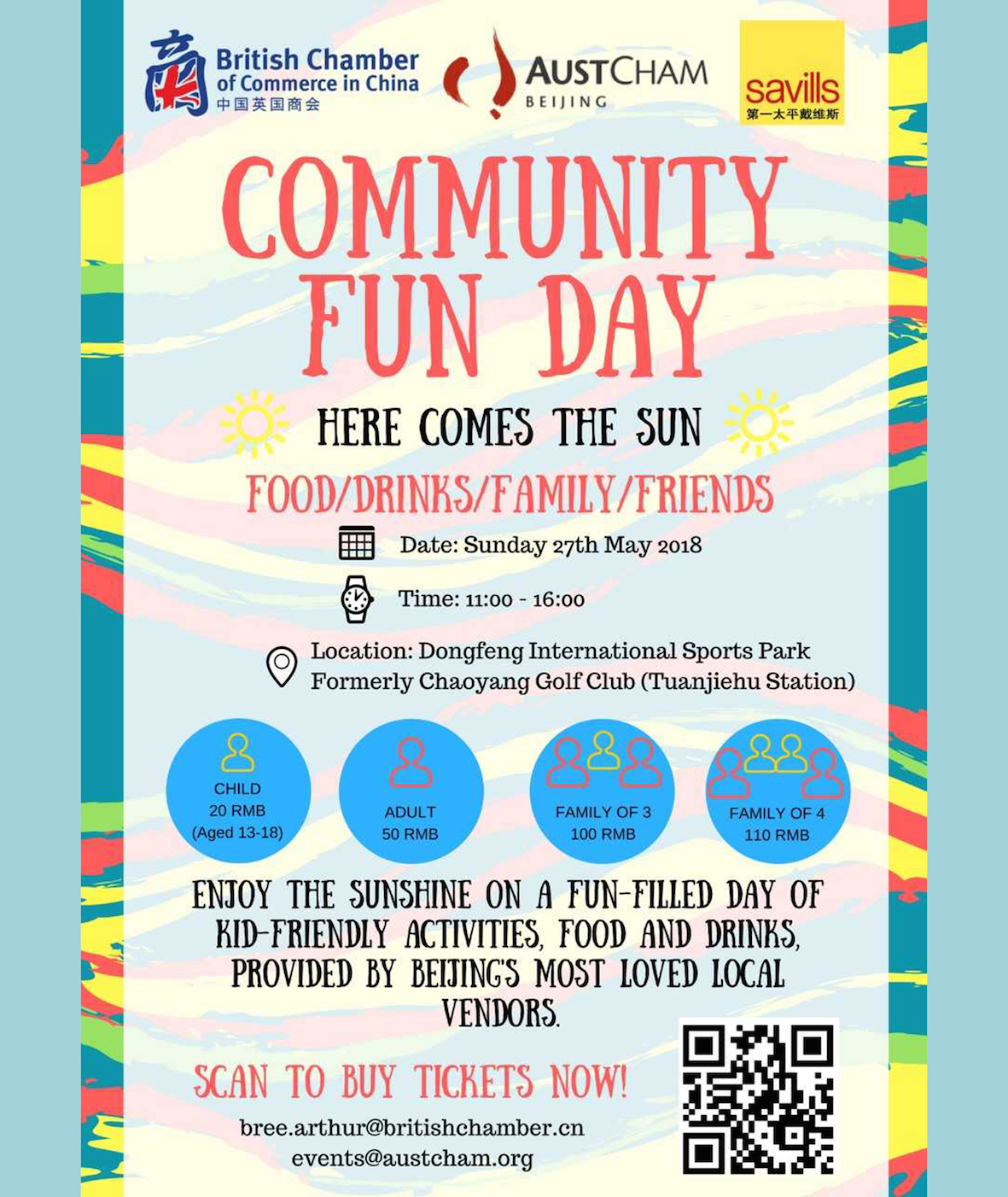 The annual BritCham & AustCham Community Fun Day is coming back to Beijing! It will happen this Sunday May 27 at Dongfeng International Sports Park’s lush grass lawns.