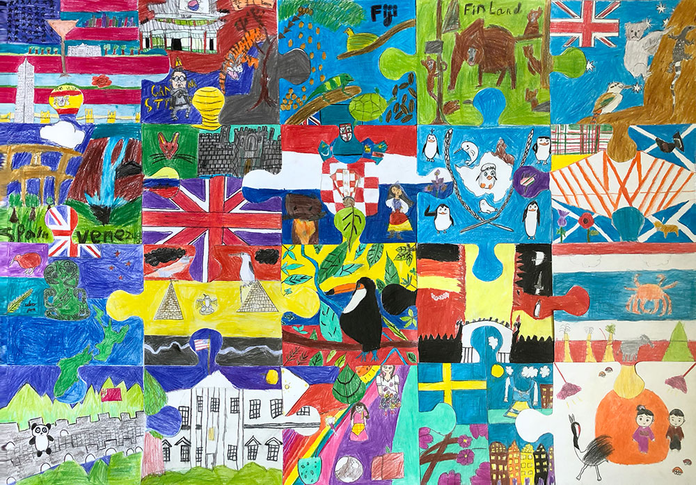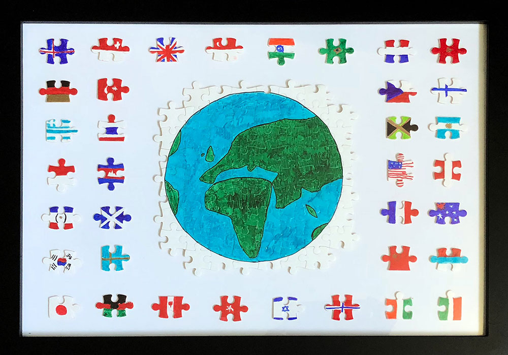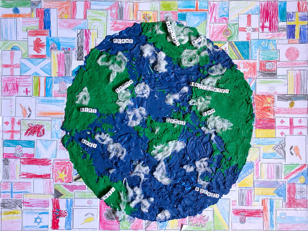 Inspired by the many countries they have visited, the children decided to create a piece of art that shares their passion for transportation and travel.