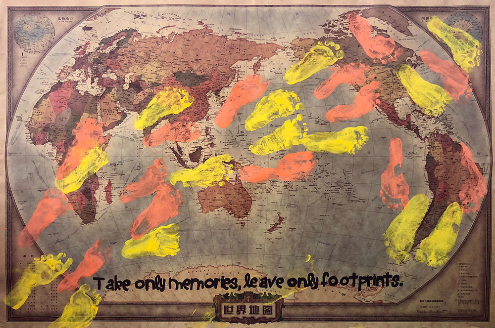 The youngest children joined in with a wonderful sensory and messy activity – walking around the whole world to create their artwork!