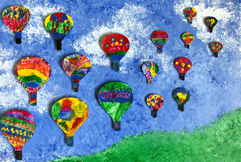 Inspired by the scene of the Hot Air Balloon Festival in Cappadocia, Turkey, the children created this uplifting piece of artwork.