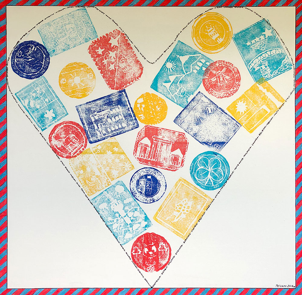 The Pelicans children used block printing to design stamps to represent the broad range of nationalities that included in their class.