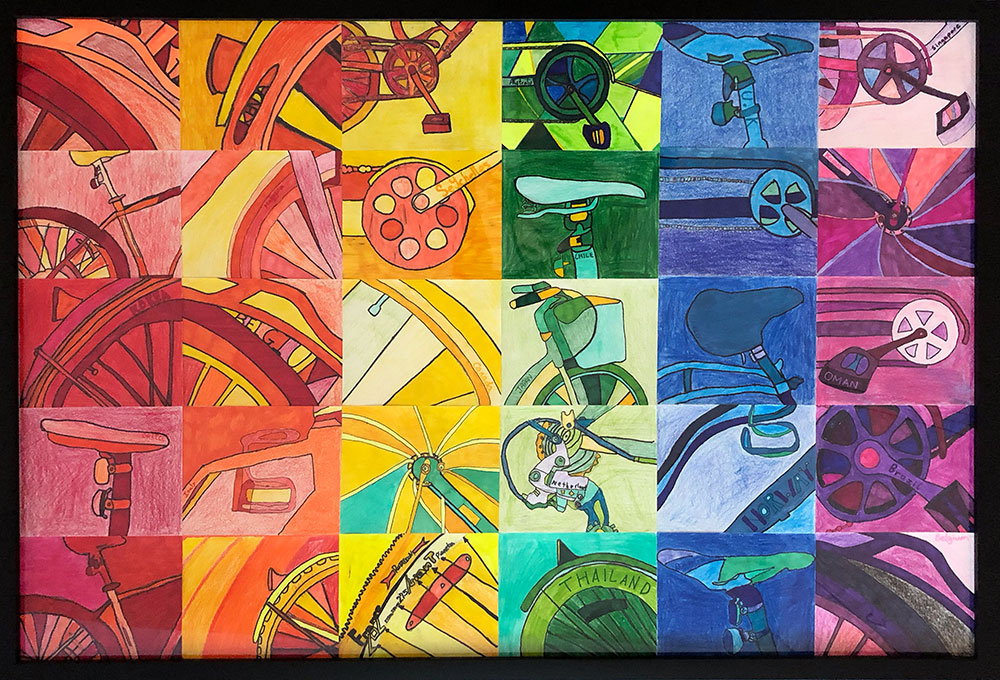 The Eagles used observation and color-mixing skills to create a monochromatic bicycle – the universal mode of transport used by rich and poor, old and young, throughout the world.