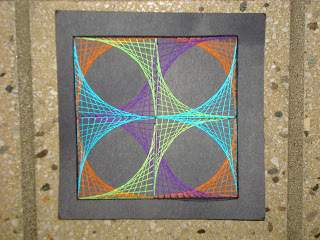 – Instead of drawing the lines, you can use colored strings, like this project from Adventures of a Middle School Art Teacher. But you need to use corkboard pins or thick needles and stick them onto the corner points of the polygon in the circle. Then, you can attach strings and connect different points.