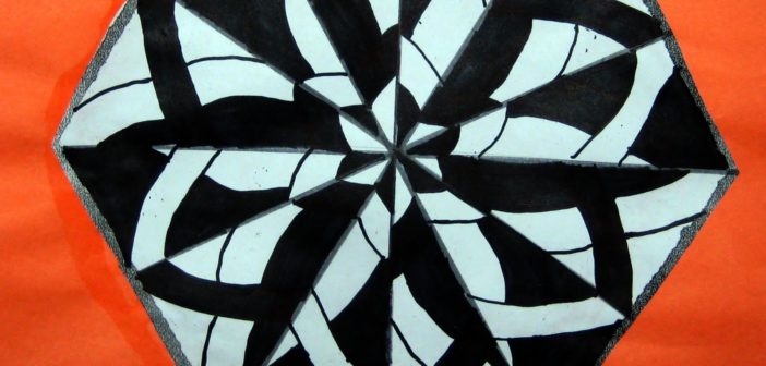 Step 1. This part is where math comes in. For younger kids, the teacher or parent can print out a ready-made polygon. The more sides the polygon has, the more complex and intricate the design will be. Older kids who have learned the basics of geometry can create their own circle with an inscribed polygon using a compass. Here’s a YouTube video that shows how to make inscribed polygons using a compass.
