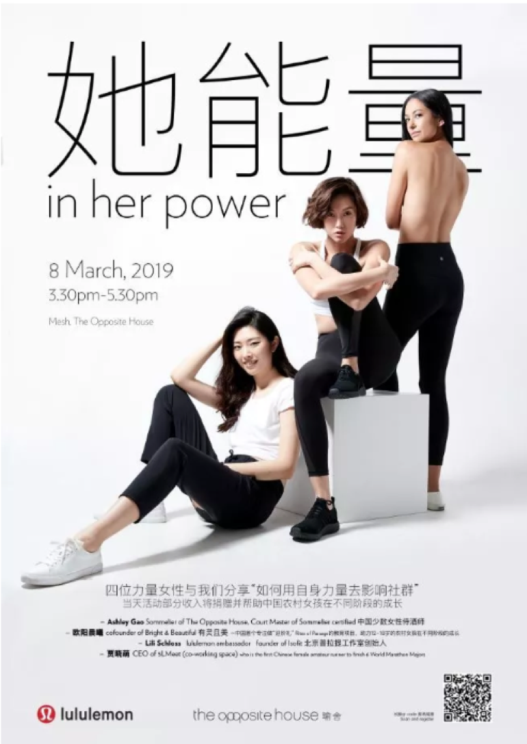 To celebrate International Women’s Day, Lululemon, The Opposite House, and United Community Partner are co-hosting In Her Power, with four women entrepreneurs sharing their stories. Speakers include Chenxi Ouyang, Bright & Beautiful co-founder; Ashley Gao, the sommelier of The Opposite House; Lili Schloss, lululemon brand ambassador; and Xiaomeng Jia, 5LMeet Co-founder. Enjoy some delicious drinks and hear how they found a balance between work and life. Adults. RMB 60. 3.30-5.30pm. Mesh. Visit this page for more information or tickets. 1F, The Opposite House, Bldg 1, Sanlitun Village, 11 Sanlitun Lu, Chaoyang District. 朝阳区三里屯路11号三里屯Village1号楼瑜舍1层 (6417 6688)