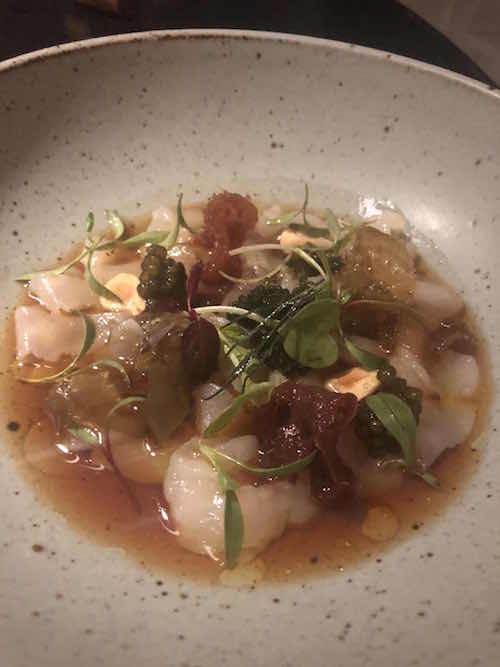 If an egg appears anywhere on a menu, I’m all over it. The Organic Egg (RMB 98) with crab mushroom, toasted shards of baguette, and parsley, had a brunch-esque feel. Silky egg yolk spills over woody mushrooms, which can gorgeously dress the homemade bread brought to the table once your order is in. It will be easy to demolish the bread served with red onion and salty anchovy butters, but delay the carb fest for this treat and mop up all the yolky deliciousness with something warm and crispy. Add a little sea salt to mix to lift everything upwards. Heavenly.