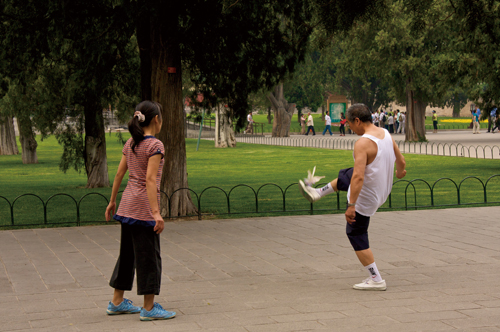 If you know how to play hacky sack, then you know how to play jianzi (毽子). Also known as “Chinese hacky sack” in English, this popular folk game features a weighted shuttlecock with four feathers attached to a stack of plastic disks. The goal is to keep the jianzi from touching the ground using various body parts, but not the hands. Want to make friends fast? Show off your fancy footwork by joining a “circle kick” at the park or on the street. Jianzi are widely available at markets and the sporting section of major supermarket chains. Alternatively, you can make your own jianzi and here’s our step-by-step guide.