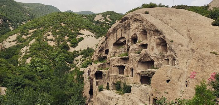 Guyaju is generally believed to have been built toward the end of the Tang dynasty (618-907 AD) by the ethnic minority Xixi (西奚), and is comprised of 137 dwelling caves built into 2 large rock walls. Some caves have doors, windows, brick beds, horse troughs, closets, niches for altars, and kangs (a firebox that channels smoke under a bed). Supposedly, the dwellers lived on the upper levels while the lower caves housed animals. But it still remains a mystery who lived there, when the caves were dug, and for what purpose.