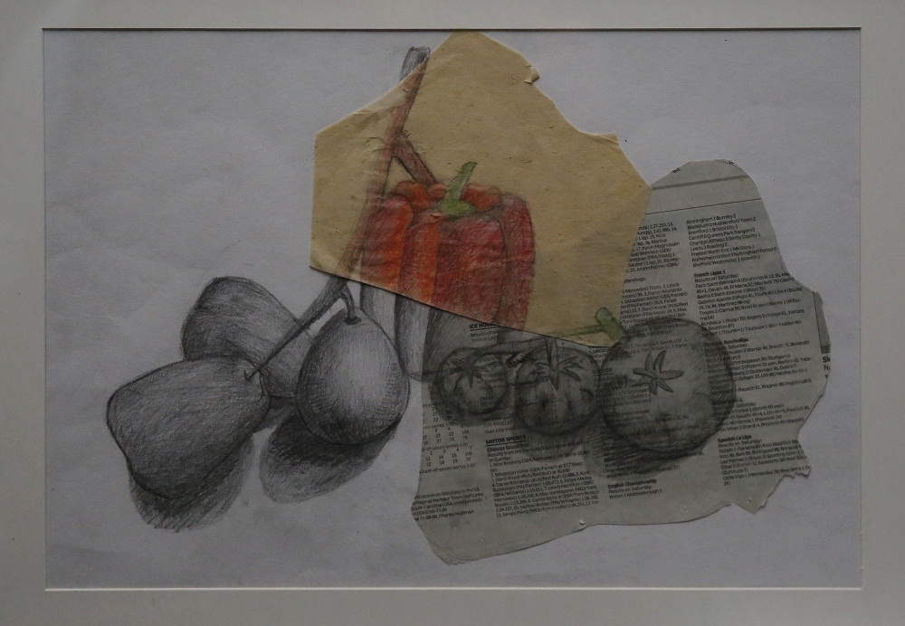 This is a sketch combining still life. It is made of a heterogeneous combination through collage. A black and white sketch, and color sketch are combined to express a nostalgic atmosphere through comparison.
