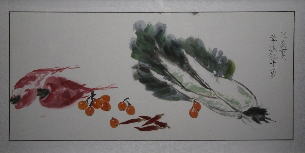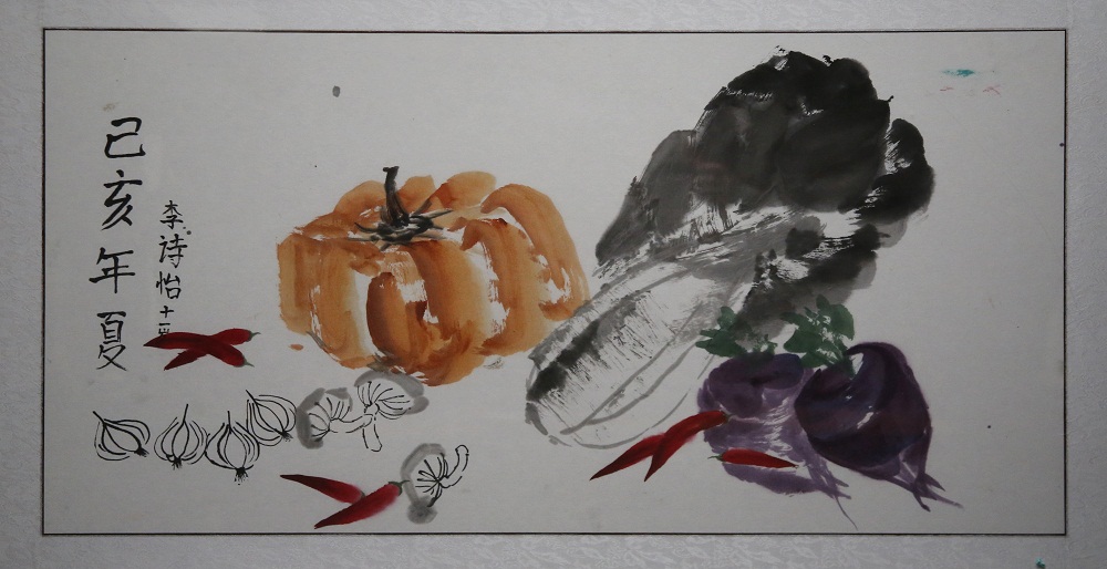 This painting illustrates the vegetables of our garden including cabbage, radish, pepper … These vegetables often appear on our dinner table! With the hands of my mother these vegetables are very delicious . What I really want to express is that this painting records the best and the simplest of our life.What I really want to express is that this painting records the best and the simplest part of our life.