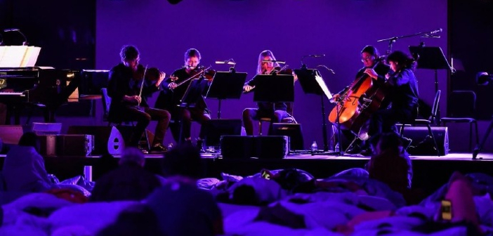 The concert featured a single work, Sleep, written by British composer Max Richter to accompany a good night’s rest. The piece, described as “calm, slow, and mellow,” is scored for piano, organ, strings, electronics, and a female singer. “I think of it as a piece of protest music,” Richter said in an interview with sxsw.com. “It’s protest music against this sort of very super industrialized, intense, mechanized way of living right now.”