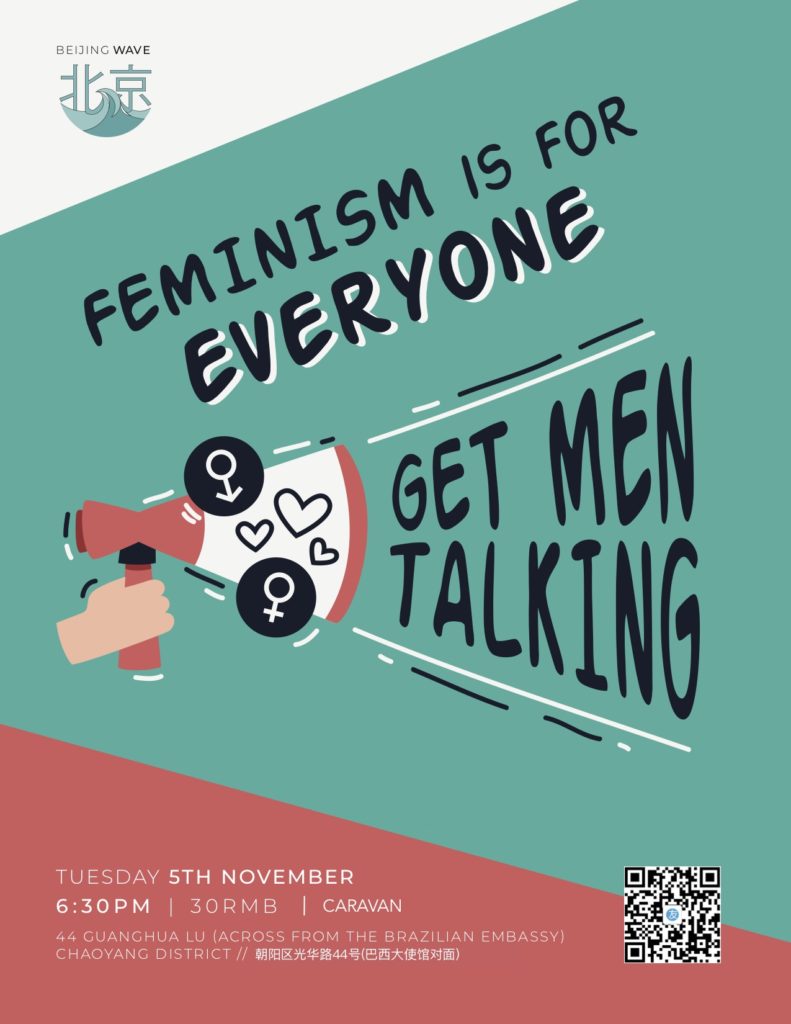 One group in Beijing is determined to break this pattern, and is running an event to encourage men to start talking about how they really feel. According to organizers Beijing Wave, “Feminism is for Everyone: Get Men Talking will take the form of an open discussion guided by short films and topical questions that will have participants breaking down the overlooked epidemic that is men’s mental health and suicide.”