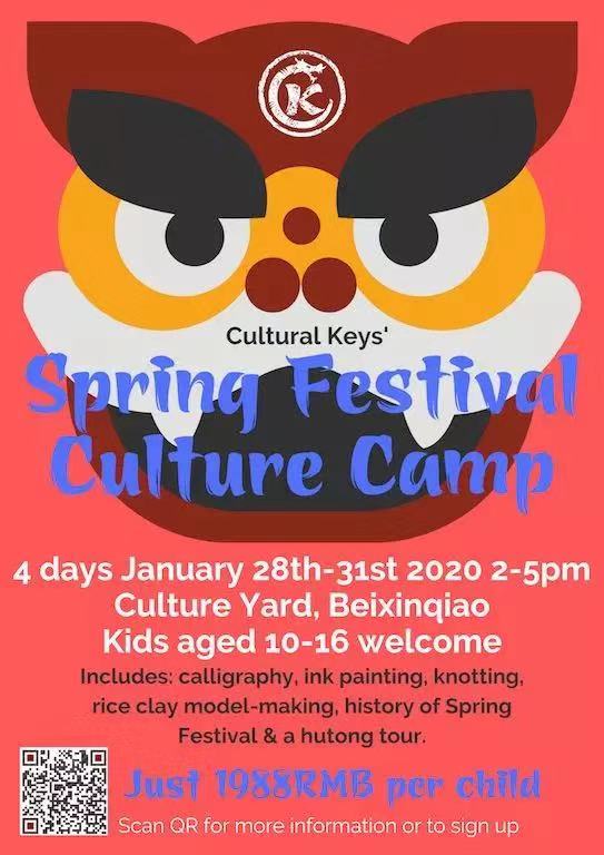 While holidays are meant to be for fun and relaxation, that doesn’t mean the kids should simply sit around the house all day. So why not take this opportunity offered by Cultural Keys and let your kids have fun while learning about and experiencing authentic traditional Chinese culture on their Spring Festival Chinese Culture Camp! Running for 4 afternoons, kids will learn about the history, legends, and activities of Spring Festival, try their hands at calligraphy, painting, rice model making, and knotting, take a tour of the local hutongs and put on a performance of the legend of the Spring Festival monster, Nian!