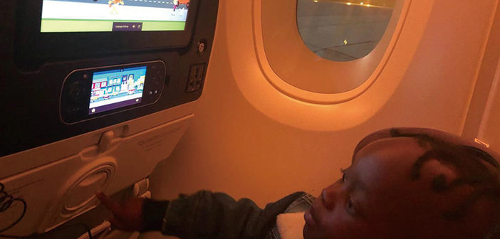 “Don’t do it!” he joked. “Seriously though, it’s tough, but I prepared a full snack tray, new toys (to be opened on the flight), drawing books, and iPads preloaded with offline videos. It was just about enough to fill the no-sleep time.