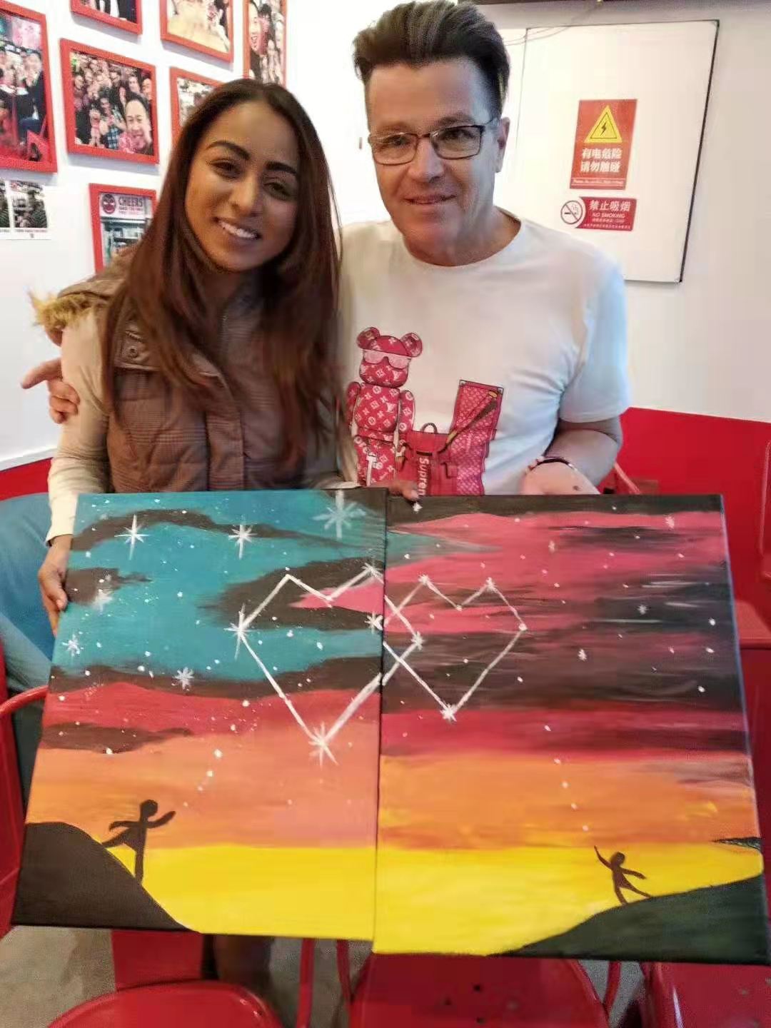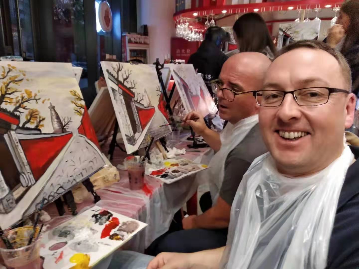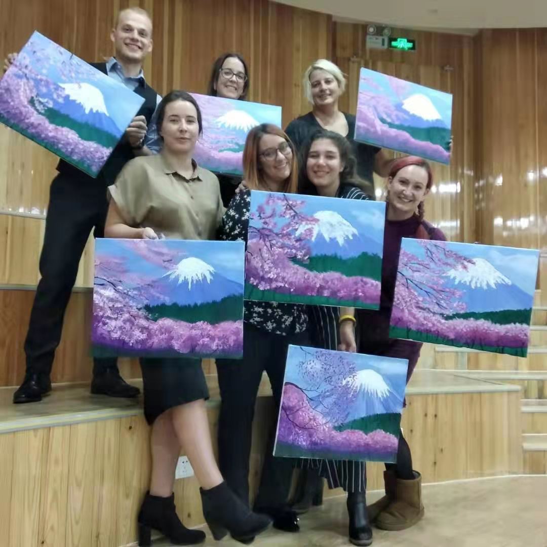 We paint pictures by different artists, but the most popular [seems to be]paintings depicting China, and in particular, Beijing. This is understandable; people want to keep and want to memorialize the city in which they will spend a few years. Even though it’s not easy to paint architecture in three hours, we manage to get it done.