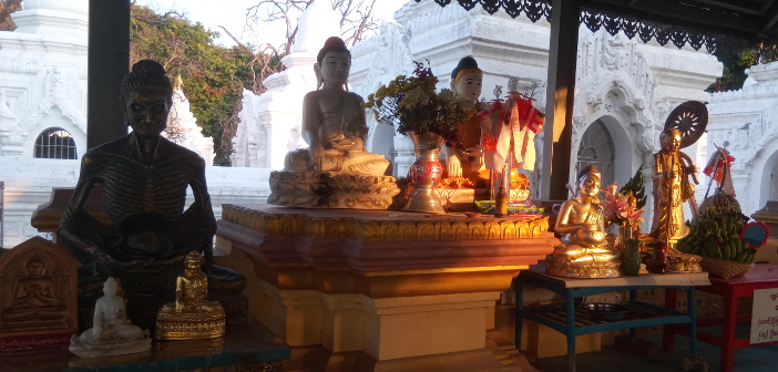 With only a day and a half to explore, we headed first to the north-eastern corner of the royal palace. (The palace site occupies over a thousand acres at the heart of Mandalay, and is visible at night as a huge dark square amid the city lights. Some of the buildings have been reconstructed, and there’s a museum on the site too, but we decided to give it a miss.) This is the location of Mandalay Hill, after which the city is named, and the stunning Kuthodaw Pagoda.