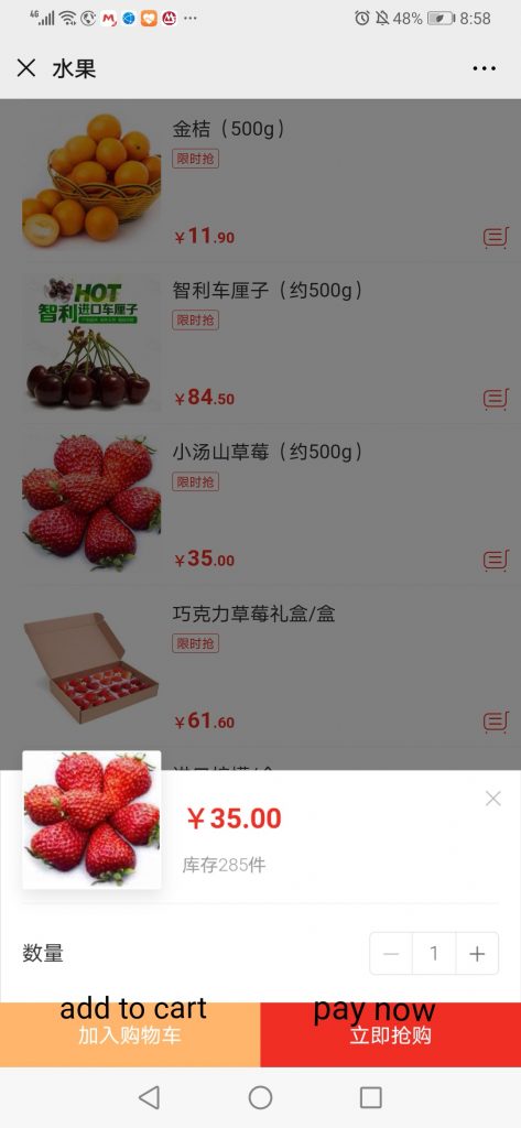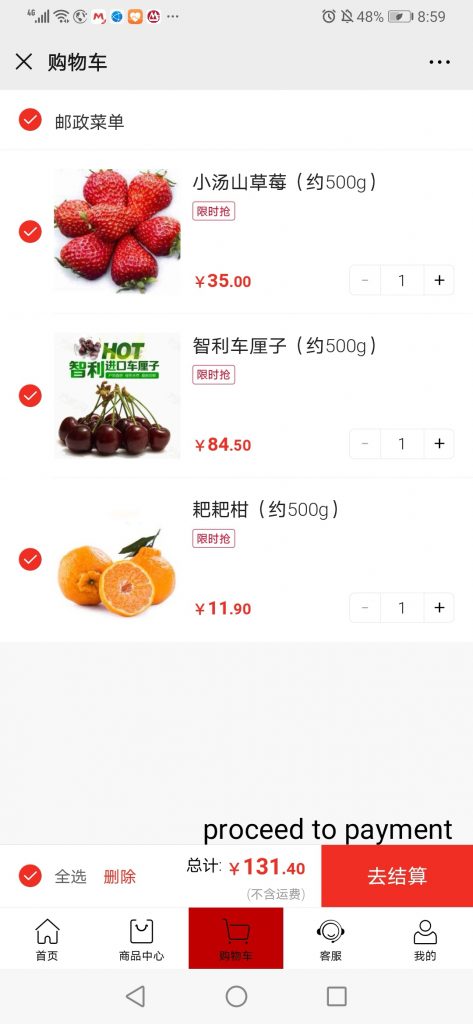 After the address part is done, then the last step if to proceed to WeChat pay.