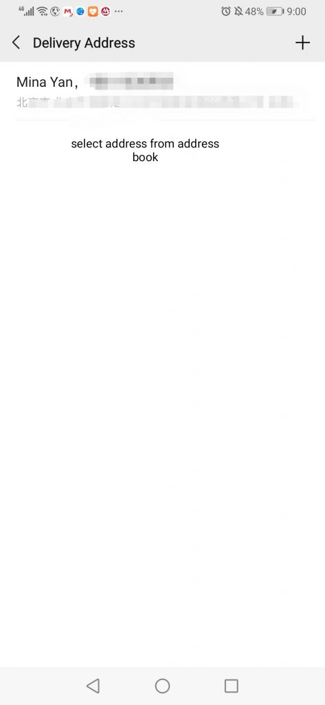 The first time you use the app you’ll need to enter your address. If you’ve already saved your address in your phone’s contact, all you need to do is give the mini-program permission to access your address book through a pop-up (in English).