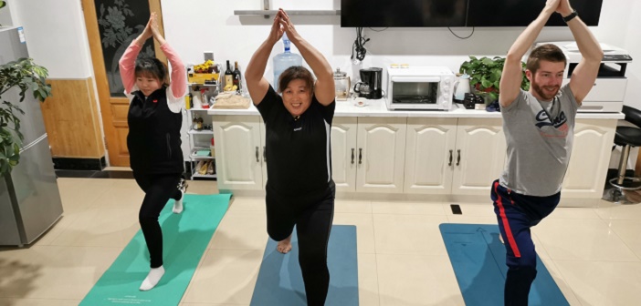 Hong Yan, a medalist of the world wrestling championship (and soon to be a mother), and Jie Ge, who’s from Belgium and now works in the Chinese winter sports industry, are both born in the same month and year, and fell in love with each other in Beijing. As they are both active individuals, they managed to come up with a unique way to spend time with the in-laws by all doing yoga together! Here’s the story of how this couple was able to introduce yoga to the in-laws as a way to pass the time, and stay fit during quarantine.