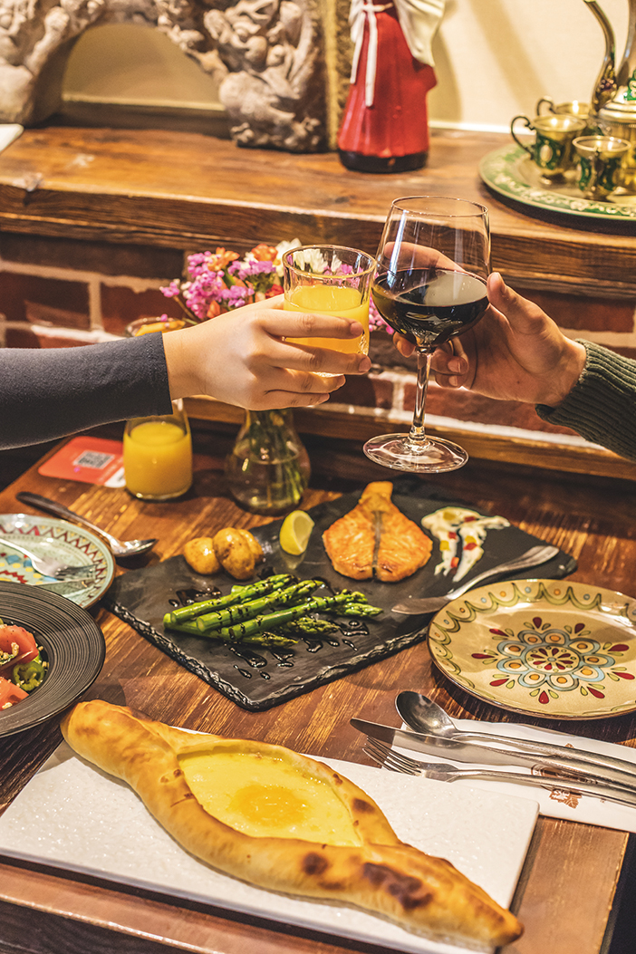 Georgia’s famous for their great food and wine, which makes Georgia’s Feast an ideal option for a no-stress date night. “Our idea of date night would be getting a table with candles and roses by the window, a bottle of Georgian wine, and of course Georgian food to share,” says Annayev.