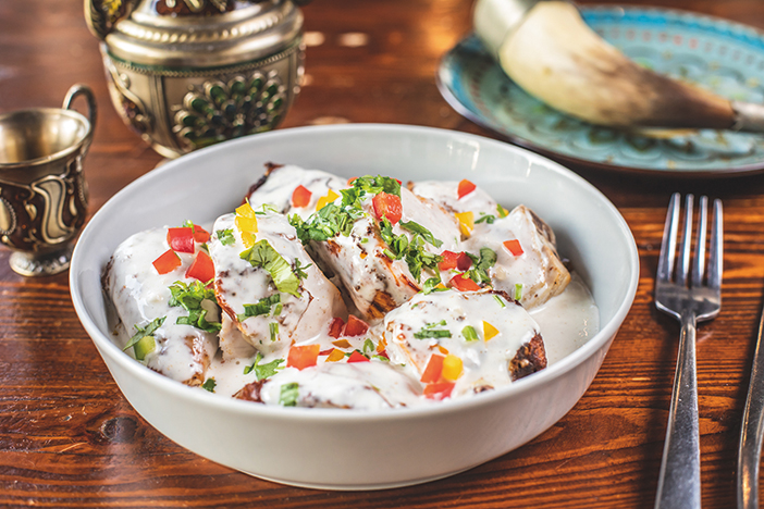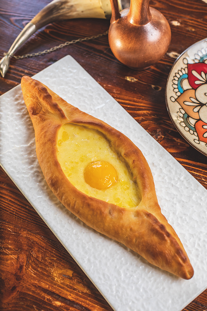 According to Annayev (and anyone who’s tasted the Georgia’s Feast specialty), if there’s one thing on the menu that you must try, it’s the Adjarian khachapuri, traditional Georgian cheesy bread. Now I don’t know about you, but they already had me at cheese and bread. The freshly baked boat-shaped bread is filled with cheese in the middle and topped with an egg. To eat, rip off pieces of the crust and dip in the warm ooey-gooey cheese. Khachapuri is the country’s national dish and it’s such an important part of Georgia’s culinary heritage that it’s currently in the process of becoming a UNESCO Intangible Cultural Heritage of Humanity.