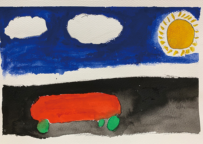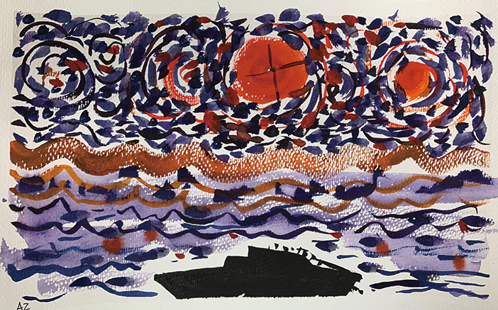 I made this painting of a boat floating in the center of the sea, glancing at the sunrise, and horizon. It was to create the feeling of nature around us. A boat within a thousand miles of water. Producing the beauty of the nature without ruining it.