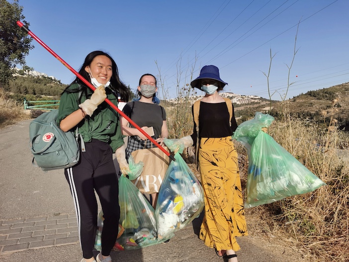 While currently stranded abroad, in the past two months, a group of friends and I have initiated a program where residents in our city of Jerusalem are invited to volunteer and collect garbage with us. It started when we were hanging out and couldn’t help but notice that the flower pots in my neighborhood were bombarded with trash. From there, we first cleaned out the surroundings of a local high school, with some passing students eagerly joining us. Since then, we’ve been hosting weekly cleanups and our group is nearing 40 participants.