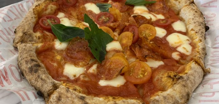Their classic pepperoni pizza with fresh cherry tomato and plenty of mozzarella