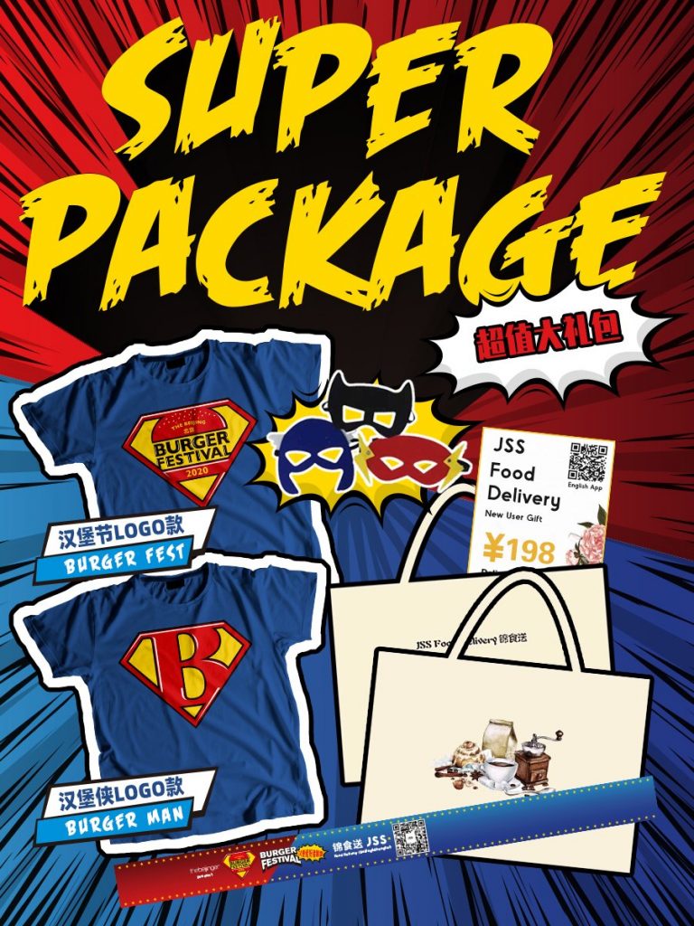 If your mini hero changes who their favorite superhero is every minute, our Super Package may be your best bet! It includes an exclusive Super Burgerman or Burger logo T-shirt, a JSS tote bag with an RMB 198 JSS delivery card, and a superhero eye mask. Don’t forget that all tykes under 1.2 meters tall are absolutely free!