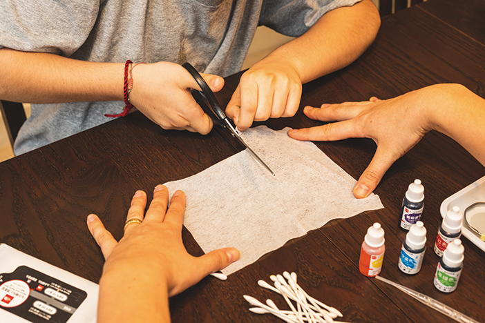 Roll the wet wipe around the cotton swab, leaving some of the tip exposed as the nib of the pen. Trim the end of the wet wipe to the length of the swab if necessary.