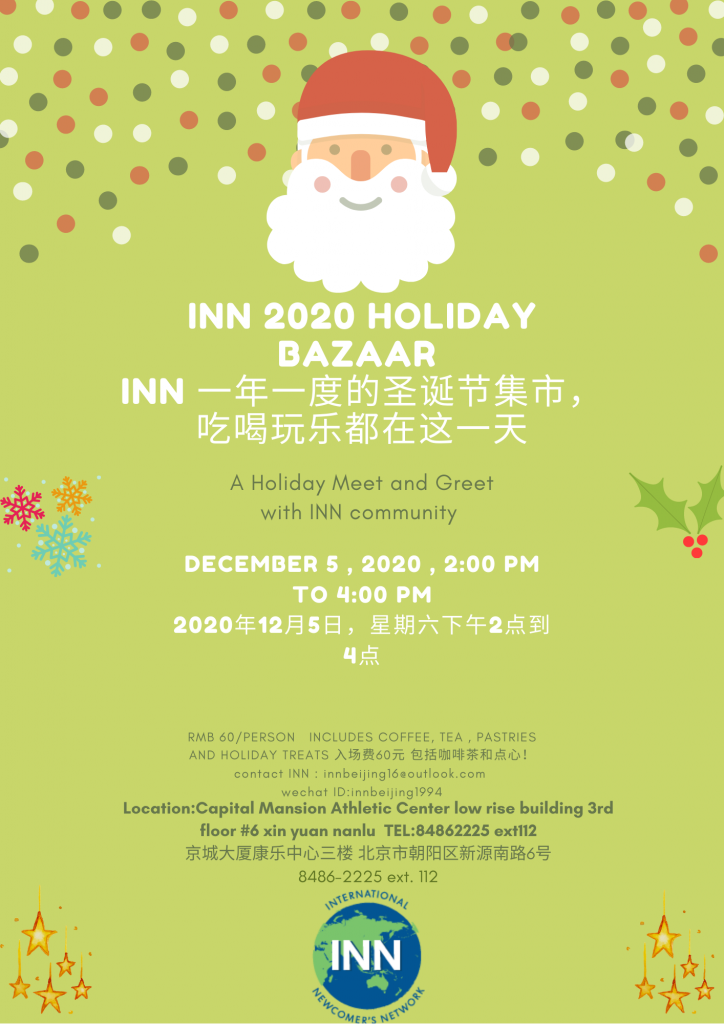 Whether you are new to Beijing yourself, or a long-time fixture, the INN crowd surely has something for you. Come along to their 2020 Holiday Bazaar. Enjoy coffee, tea, pastries, and other holiday treats and get to know the Beijing community a little better. For more info, add INN on WeChat ID: innbeijing1994.