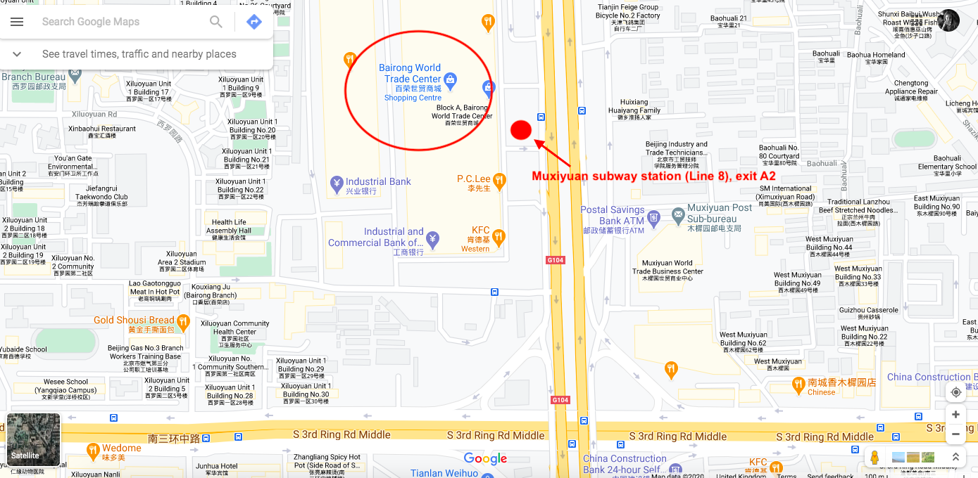 Subway: 10 min walk from Muxiyuan Station, Line 8