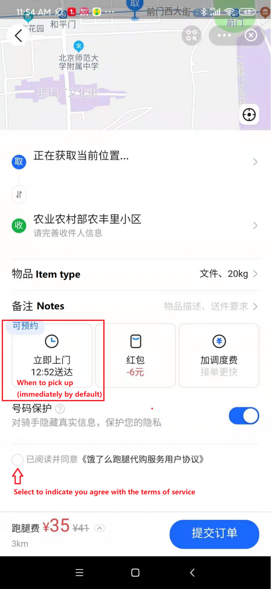 If you just need someone to check if you left your faucet running or deliver a message to a scorned lover, then this is also the option for you – simply describe your situation in the 备注 bèizhù notes section.