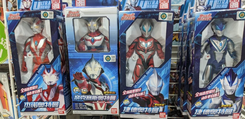 My own 7-year-old saw the picture above and asked why I was writing about Ultraman. I hadn’t ever heard him talk about the superhero before, but he rattled off these facts he’d learned from a friend at school: “He’s very huge so he can fight the huge bad monsters, he has big power-ups, and you can play with his card game.”