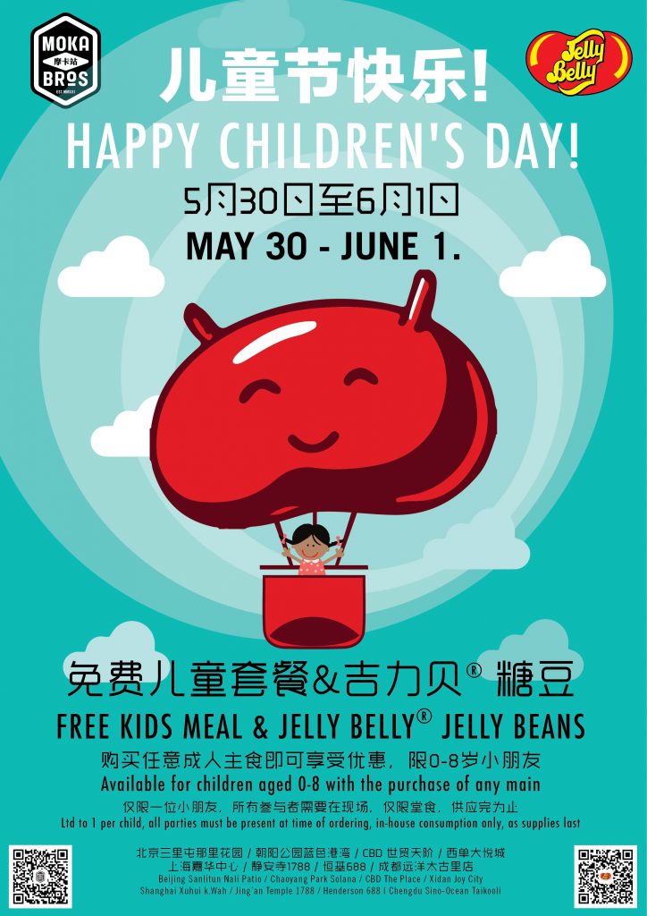 Um…free jellybeans just for being a kid? That sounds like a great deal to us! In honor of International Children’s Day, this Sun, May 30, and Mon, Jun 1, Moka Bros is offering free Jelly Belly jellybeans and a kids meal for kids 0-8 years old with the purchase of any main dish. A great excuse to pop down and check out their new summer menu at the same time.