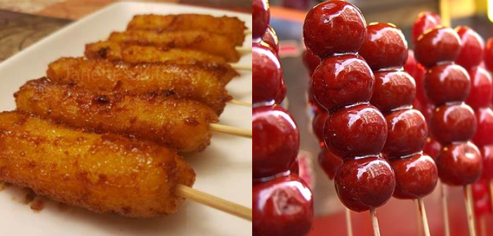 Believe it or not, this isn’t a corndog. Banana cue is short for banana barbecue and is another Filipino street food delight. Instead of regular bananas, Banana cue is made of plantains that are fried and coated in brown sugar. Meanwhile, in China, there’s the classic tanghulu that’s traditionally made with whole hawthorn berries coated in a layer of candied sugar.