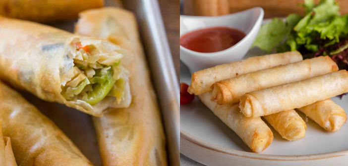 I know! The resemblance is uncanny between these two. Lumpia is a type of Filipino egg roll. The filling is typically comprised of ground pork, minced onions, carrots, and salt and pepper as seasonings, while its wrapper is made from flour and water. Spring rolls, which might as well be lumpia’s long-lost twin, is a Chinese fried spring roll composed of minced pork, carrots, bean sprouts, and cabbage – though the fillings can vary. The reason why they pretty much look the same is that their wrappers are both made of flour and water, which make them very fragile to the touch. The difference is in the filling!