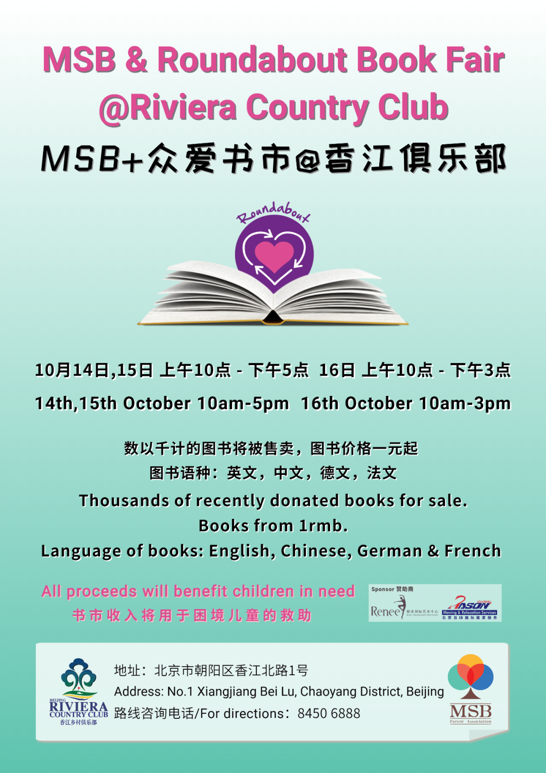 This week, Roundabout will be holding a three-day book fair at Riviera Country Club, where thousands of recently donated books in English, Chinese, German, and French will be up for sale for as little as RMB 1.