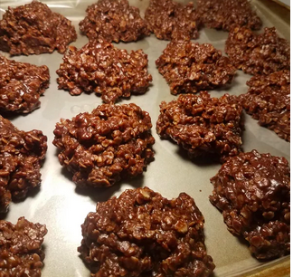 - Remove from heat and stir in peanut butter, oats, and vanilla.