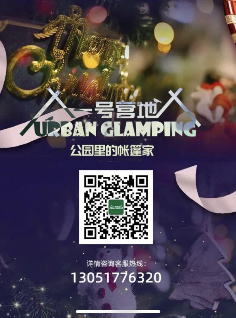 On Christmas weekend, Urban Glamping will offer a special four-hour-long morning and afternoon program with a buffet spread, Christmas activities, and Santa visits scheduled throughout the day! The afternoon session that starts at 2pm seems the more attractive option with a special Christmas tree lighting ceremony and a final Santa Claus visit at 6pm. Search 帐篷一家 Zhàngpéng yījiā on WeChat and Dianping for more details or scan the QR code below!
