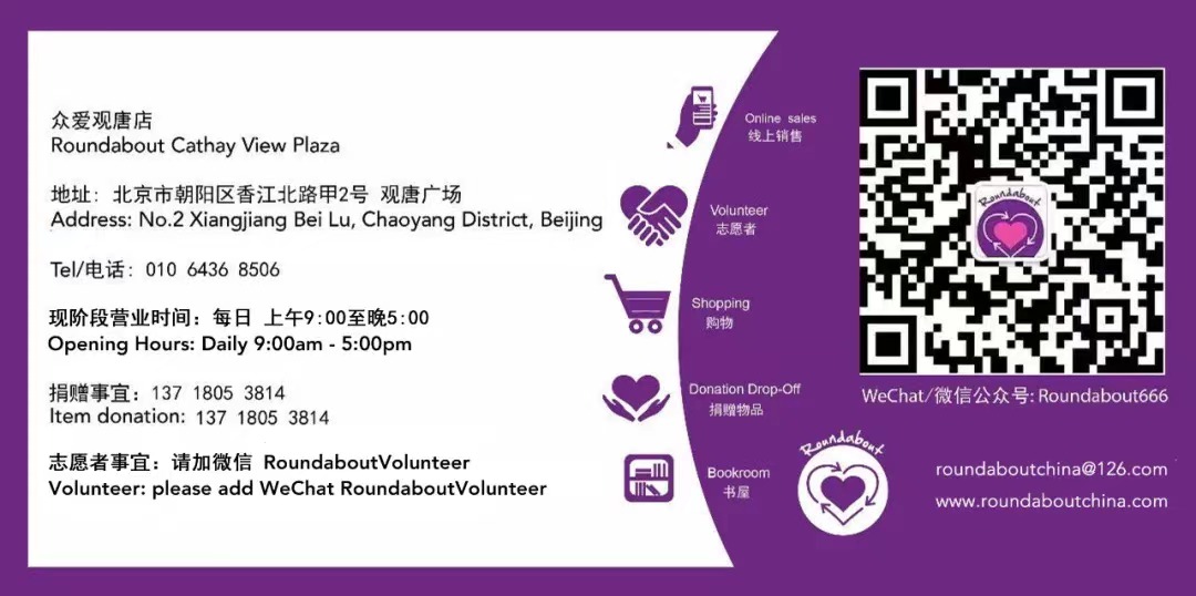 Volunteering is quite a different story for Dawn Garretson, who began curating clothing donations at Roundabout this past March. Almost every Sunday, Garretson walks to Roundabout from her home around the corner and dons a pink apron like all of her fellow volunteers. She proceeds to sort through and tidy the clothing racks that line the store in Shunyi, picking a few choice pieces that she photographs and promotes online, which usually get snapped up in no time. All proceeds from the sales go directly to running the non-profit, which benefits needy children around China.
