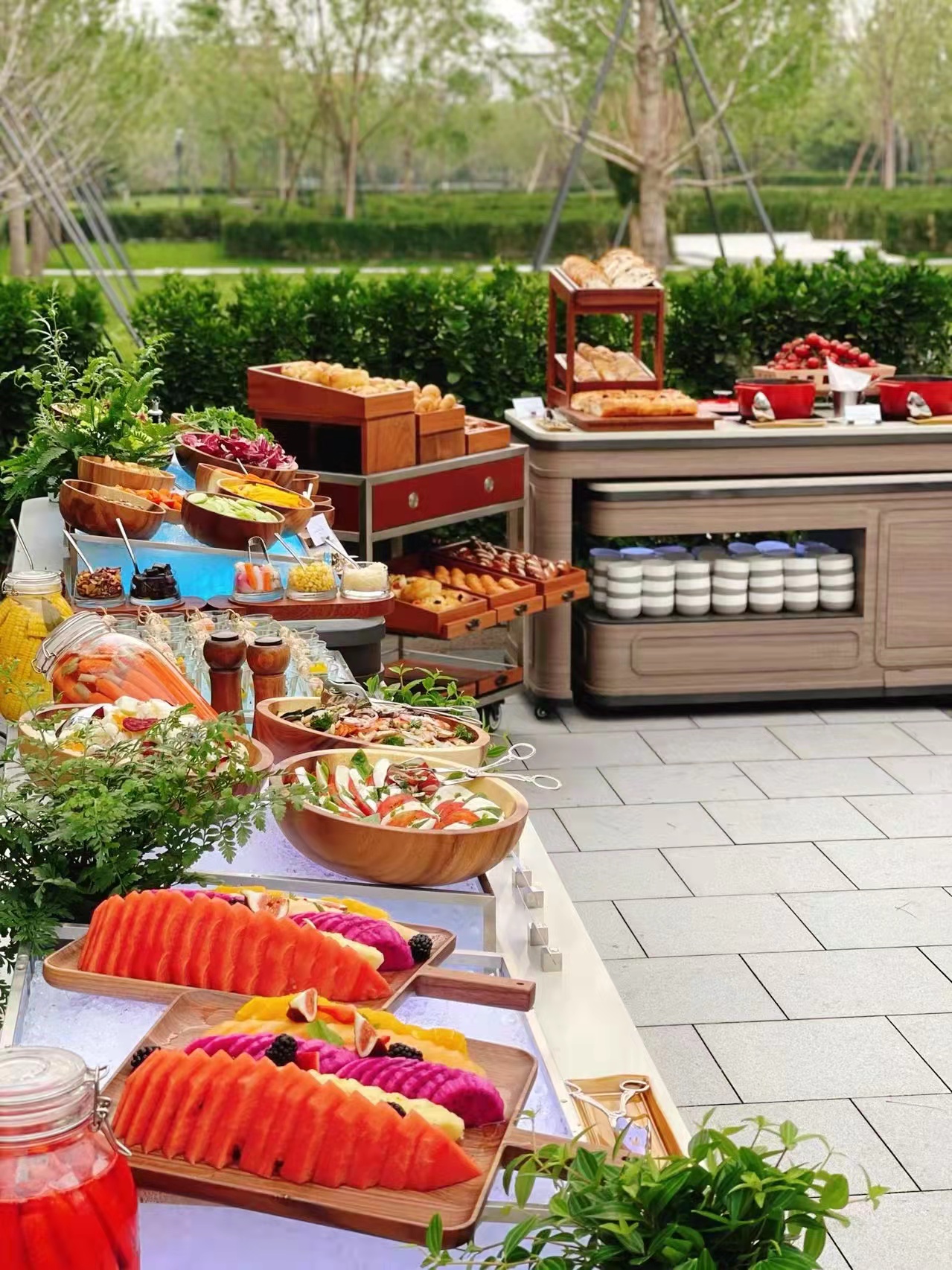The BBQ Brunch Buffet is RMB 388 per adult, RMB 198 for kids 3-11 years old, and free for kids under 3. Add RMB 188 per person for two hours of free-flow wine and prosecco while you dine.