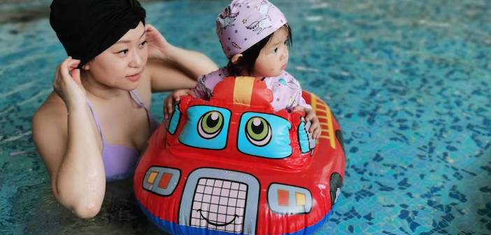 Pro tip: In Beijing, everyone who goes in the pool need to wear a swimming cap. Babies are no exception.