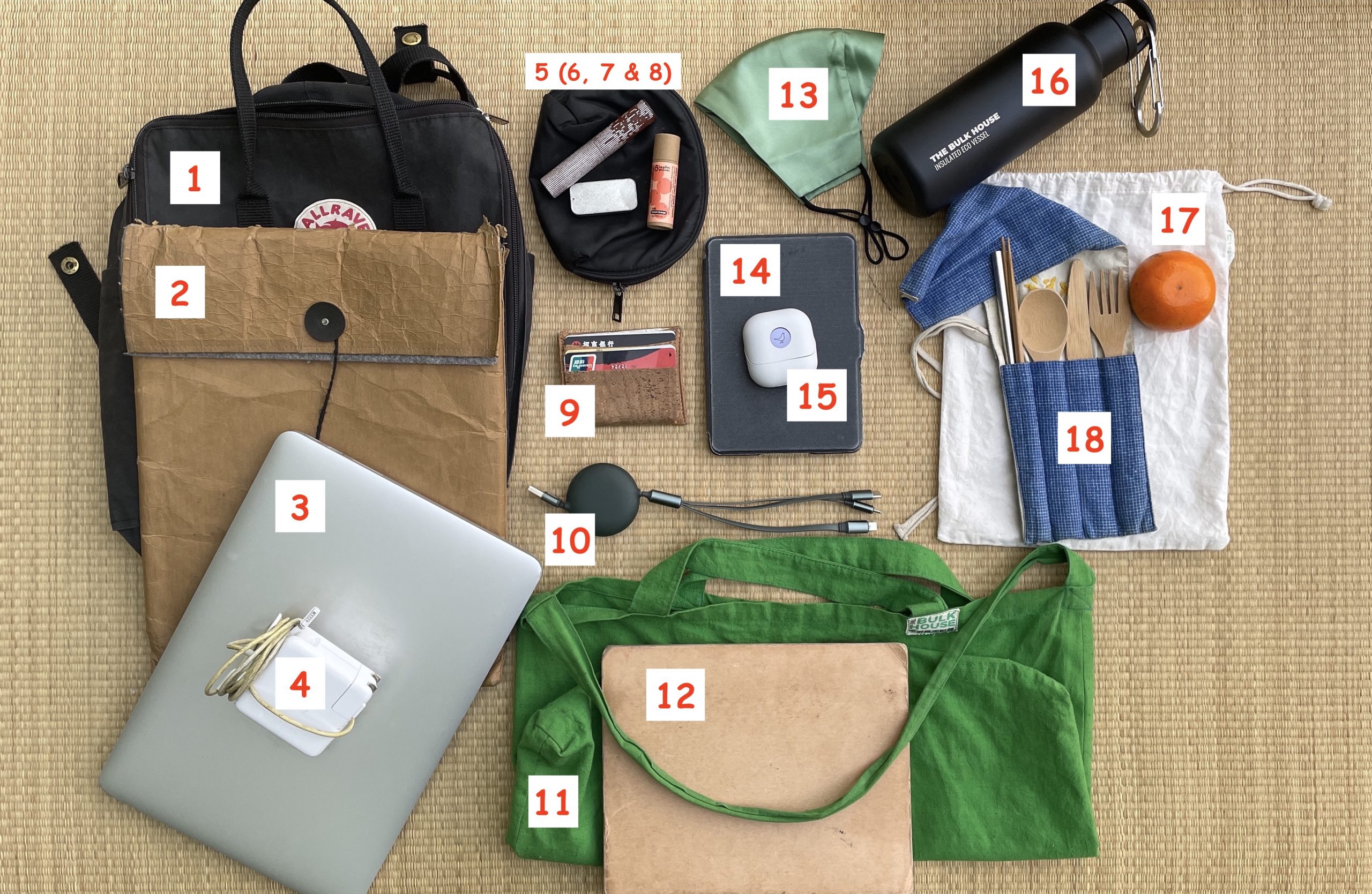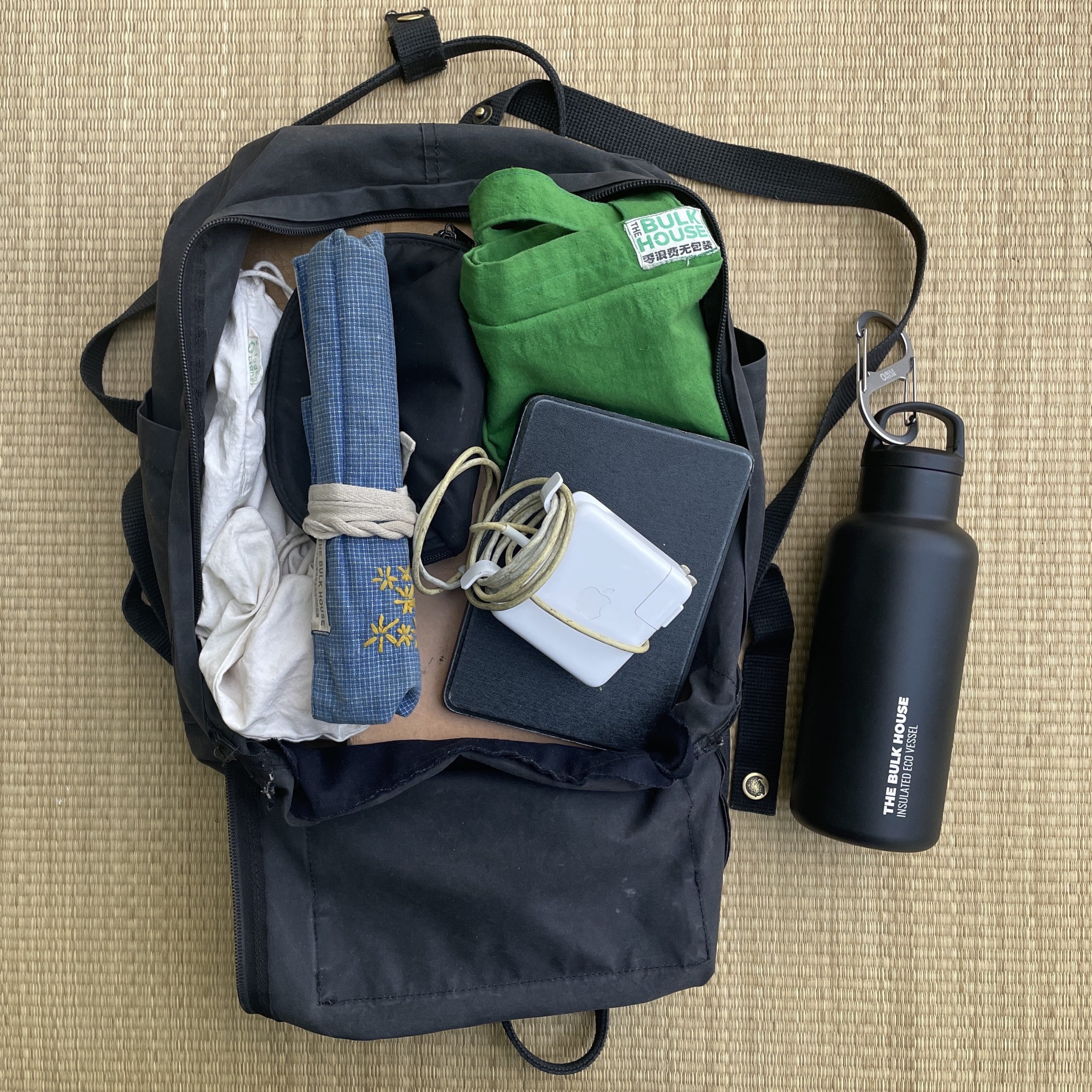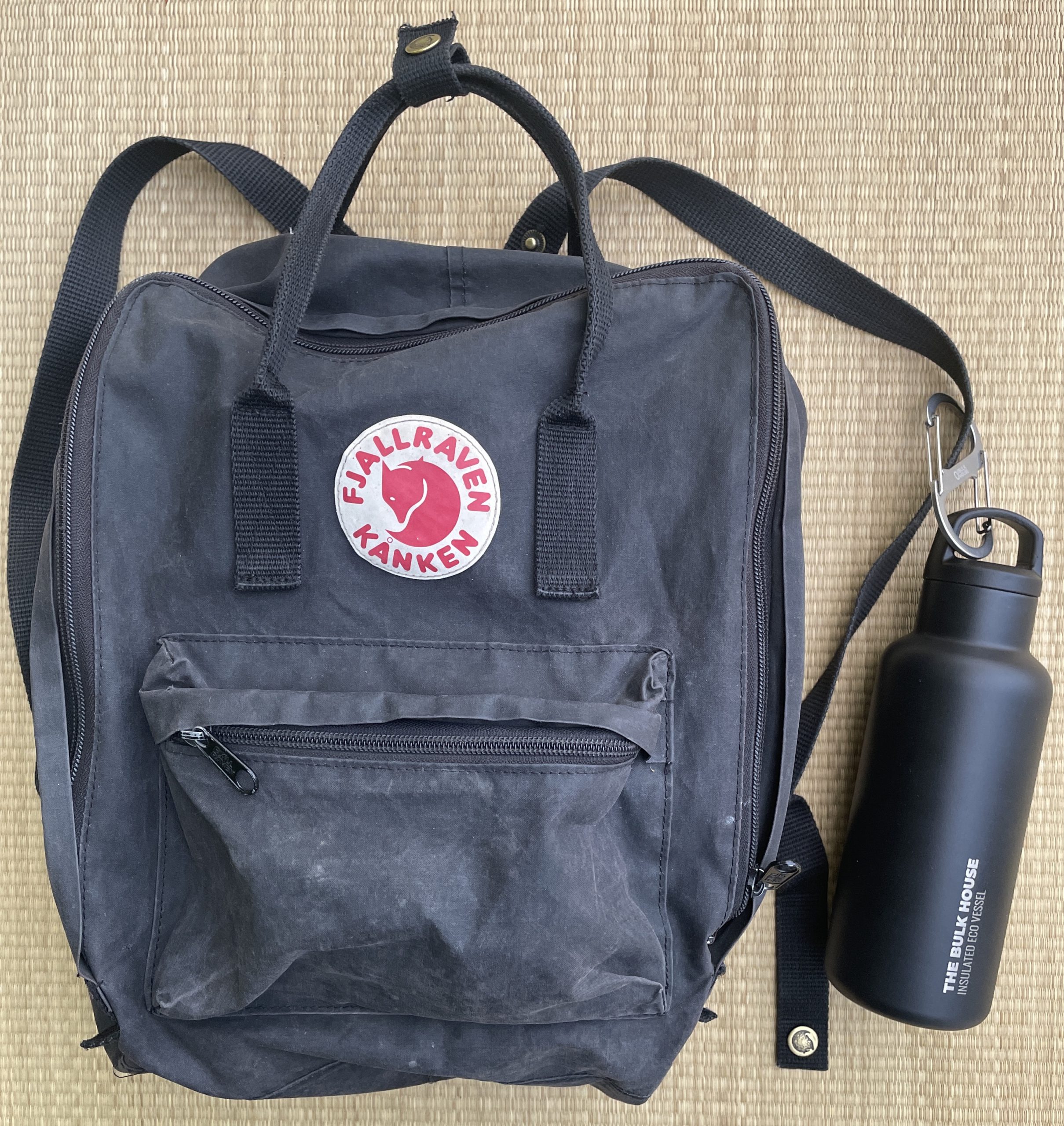 Although I don’t always have every item with me, one item that stays with me always is my reusable bottle. It’s insulated and lightweight so it’s great in the winter to keep hot water or tea inside and handy in the summer for cold drinks or kombucha. I clip a carabiner to it to make it easy to grab and drink from when I’m cycling.