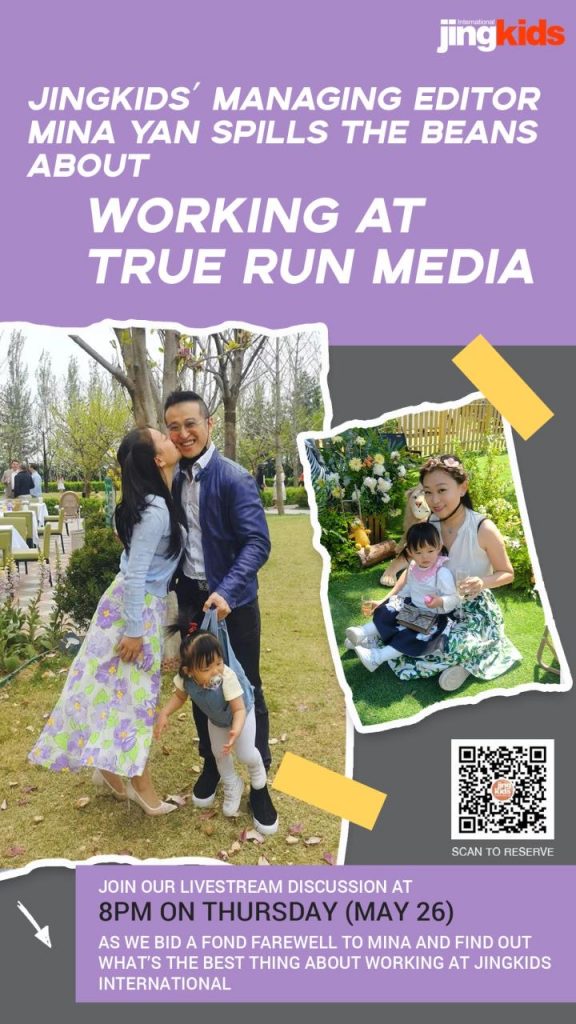 Grab a glass of wine and join us in our livestream interview with Mina Yan on Thursday, May 26 at 8pm as she answers your questions about being managing editor for jingkids and more, and we also bid her a fond farewell!