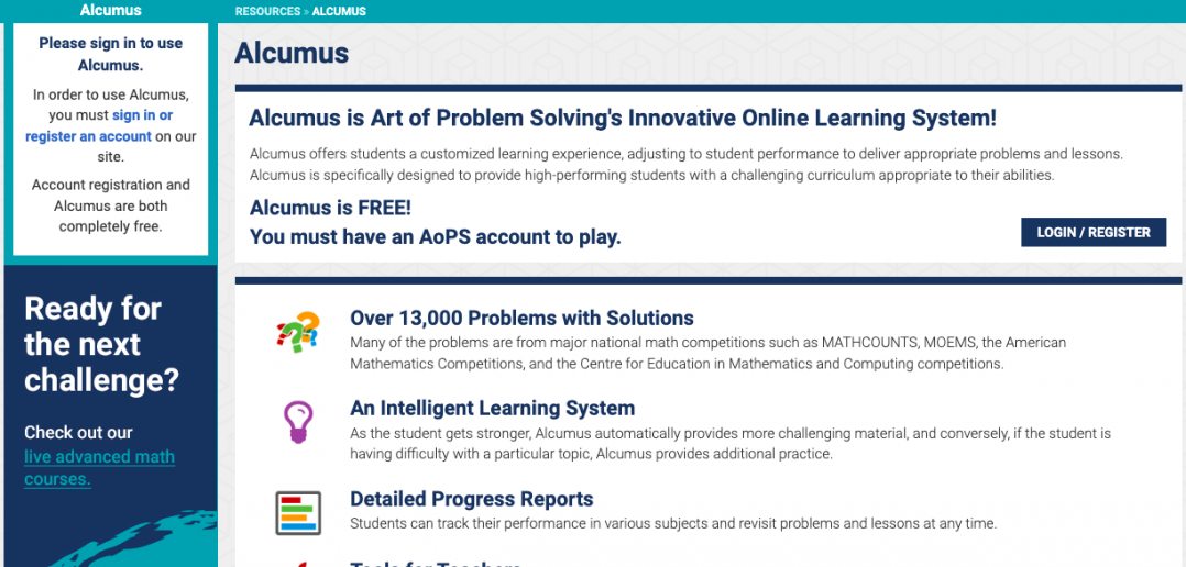 “The alcumus program is a great choice for any self motivated students to find practices suited for their own skill level.” says Eva Jiang (14 years-old student at Keystone Academy)