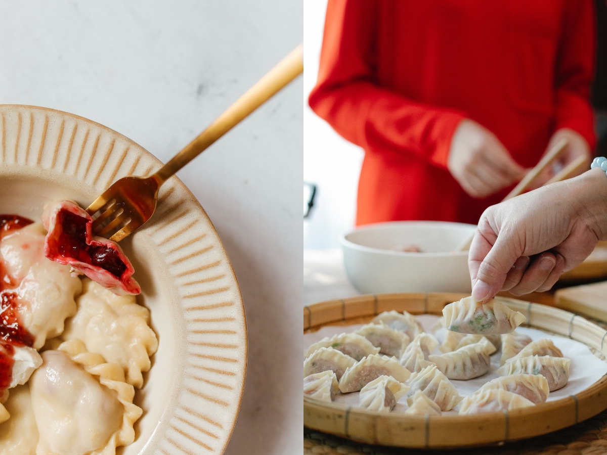 Both dishes take a big part in their respective country’s cultures. A Chinese person cannot live without dumplings (jiaozi), while a Ukrainian cannot live without vareniki. They both have the same texture, but it is the inside that counts.
